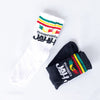 Kit com 2 pares da Meia Obrigado JAH, reunindo as duas versões da coleção: Branco e Preto.