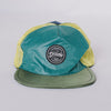 Boné produzido a partir de velame reaproveitado, transformando material técnico de voo em um acessório urbano de alta resistência e identidade visual marcante.