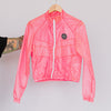 Jaqueta feminina produzida a partir de velame reaproveitado, desenvolvida para ser extremamente leve, prática e funcional.