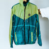 Jaqueta confeccionada a partir de velame reaproveitado de paraquedas, combinando verde claro com teal profundo em uma construção leve e funcional. O nylon aeronáutico mantém o toque crocante característico do material de voo, oferecendo proteção contra vento leve e excelente respirabilidade para uso urbano. A estrutura bicolor reforça a estética técnica da peça, preservando a identidade do voo aplicada ao design contemporâneo. Produção manual, com disponibilidade limitada.