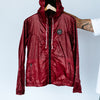 Jaqueta confeccionada a partir de velame reaproveitado de paraquedas em tonalidade vermelho rubi, mantendo a leveza e o toque crocante característico do nylon aeronáutico. A peça traduz a estética técnica do voo para o uso urbano, oferecendo proteção contra vento leve e estrutura funcional para o dia a dia. Produção manual com disponibilidade limitada por tamanho, mantendo o conceito de exclusividade real de estoque.