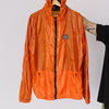 Jaqueta masculina produzida a partir de velame reaproveitado, desenvolvida a partir de um novo lote em tonalidade laranja mais clara, mantendo a identidade técnica da marca.