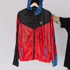 Jaqueta produzida a partir de parapente reaproveitado, transformando material técnico de voo em uma peça leve, resistente e funcional.