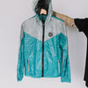 Jaqueta produzida a partir de velame reaproveitado, transformando material técnico de voo em uma peça leve, resistente e funcional.